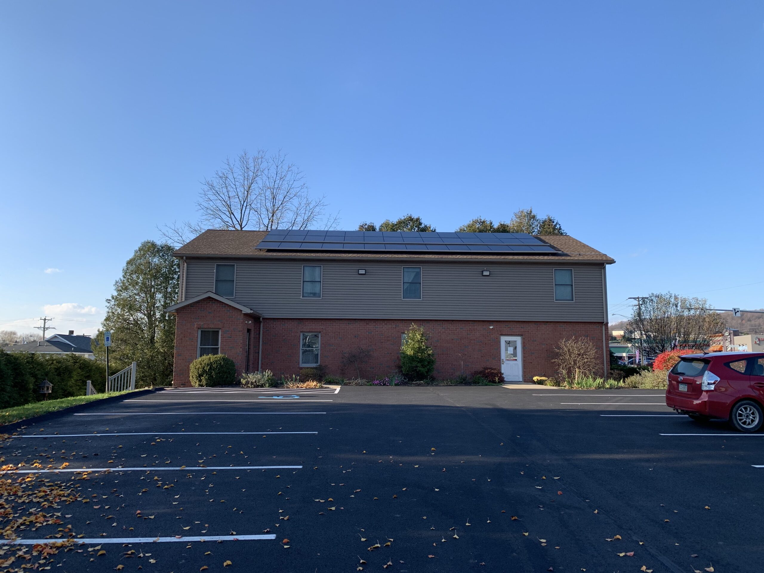 32 kW solar array installed on the metal roof of a building. Solar array also reduces the amount of direct sunlight on the metal roof saving air-conditioning costs.